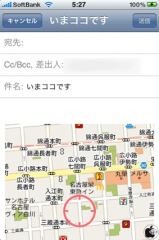 現在地メールは、Googleマップの現在地マップを写真としてメール送信することが出来ます。