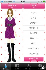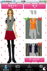 項目をタップすると、その項目に登録されたアイテムが表示されるので、好きなアイテムをタップすると、左側のアバターが変化します。