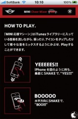 ビー・エム・ダブリューが、iPhone/iPod touch用アプリ「MINI 応援 マシーン」を、App Storeにて無料配付していたので試してみました。
