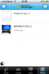 PC版のWindows Live Messengerアカウントが利用可能で、Facebook、Flickr、MySpaceなどの更新情報表示も出来るようになっています。