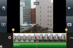 素材が動画の場合、動画を1回タップすると、クリップガイドが表示され、黄色い選択部分を動かす事で、使用する動画部分を選択出来ます。