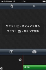 iPhone 4のカメラで撮影するか、写真ライブラリーから素材を選択します。