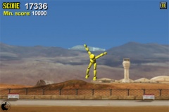 場所がネバダ州の砂漠にある秘密実験場という設定で、指でダミー人形を飛ばして、なるべく多くのダメージを与えます。