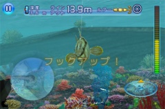 釣り針を中心にした海の中の表示が変わり、リールを巻いたり、本体を傾けて糸を引いたりしながら、魚が食い付くのを待ちます。
