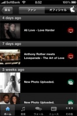 トップページの最近のアクティビティをタップすると、ファンが投稿した写真や、オフィシャルサイトに掲載された写真などを閲覧することが出来ます。