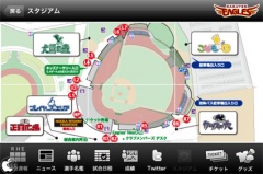 スタジアムをタップすると、各座席からの眺めや、スタジアムMAPなどを見る事が出来るようになっています。
