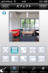 エフェクトやフレームタブをタップすると、写真上に配置出来るデザインテンプレートが表示されます。