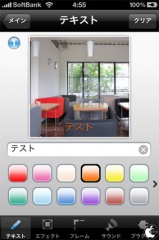 各コマをタップし、テキストタブをタップすると、写真に動きがついたテキストを表示させることが出来ます。