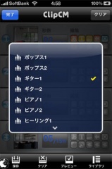 画面右上のBGMをタップすると、様々な音楽ジャンルが表示されるので、その中から好きなジャンルを選択すると、ミュージック付きで4コマCMが再生されます。