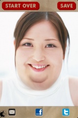 2010年07月10日(土) iPhone App Store#FatBooth#iPhone#iPod_touch 顔写真デブ化アプリ「FatBooth」を試す ※本サイトは、アフィリエイト広告および広告による収益を得て運営しています。購入により売上の一部が本サイトに還元されることがあります。 FatBooth PiVi & Coが、iPhone/iPod touch用顔写真デブ化アプリ「FatBooth」を、App Storeにて販売していたので試してみました。 顔写真をデブ顔に自動変換する顔写真編集アプリです。 最初に、iPhoneのカメラで撮影するか、写真ライブラリーから、正面を向いた顔写真を選択します。 次に、目、口、あごの位置を設定します。 位置設定が完了したらStartボタンをタップすると、太った顔が表示されます。 ↓の評価ボタンを押してランキングをチェック!