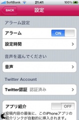 設定アイコンをタップすると、滝沢乃南の声で目覚まし設定を行う事が出来るようになっています。