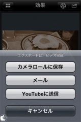 レンダリングが完了すると、右上のアクションボタンがアクティブになり、写真ライブラリー保存、YouTubeへの直接アップロード、メール添付などを行う事が出来るようになります。