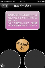 花火相性占いをタップすると、画面に2人の指を置くと、花火玉に火がつき、相性結果が表示されるようになっています。