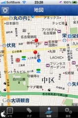 トップページの地図タブをタップすると、メモに付加された位置情報がGoogleマップ上にピン表示されます。