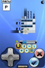 5x5のマスが表示されるので、そのマスの外側に表示されている数字をヒントにしながら、マスを選択してチェックボタンをタップしていきます。