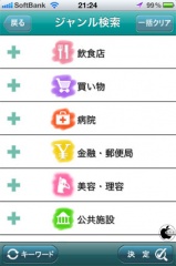 右下のさがすボタンをタップして、表示する情報ジャンルを選択します。