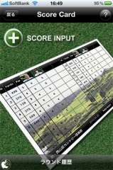 Score Cardをタップすると、ゴルフスコアを記録することが出来ます。