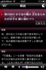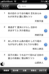 浜島書店が、iPhone/iPod touch用百人一首アプリ「小倉百人一首(無料版)」を、App Storeにて無料配付を開始していたので試してみました。