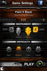 ゲームの設定では、曲毎に、ギターかベースを選択することができ、またゲームレベルも選択することが出来るようになっています。