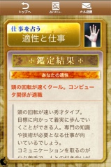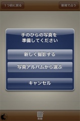 2010年07月29日(木) iPhone App Store#iPhone#iPod_touch#ザ・手相 手のひらを自動スキャンして診断する手相占いアプリ「ザ・手相」を試す ※本サイトは、アフィリエイト広告および広告による収益を得て運営しています。購入により売上の一部が本サイトに還元されることがあります。 ザ・手相 アンバランスが、iPhone/iPod touch用自動手相占いアプリ「ザ・手相」を、App Storeにて販売を開始していたので試してみました。 手のひらをスキャンして手相判断し、占い結果を表示する手相占いアプリです。 手相を占うボタンをタップして、本質、恋愛、仕事のジャンルから1つ選択し、iPhoneのカメラで手のひらを撮影するか、写真ライブラリーから手のひら写真を選択します。 手のひらの背景は、なるべく単色の方が良いです。 撮影が完了すると、手のひらのスキャンが開始されます。 手のひら認識が成功し、手相診断が完了すると、占い結果が表示されます。 ↓の評価ボタンを押してランキングをチェック!