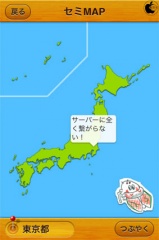試した時は、サーバーに繋がらないという吹出しが表示されて、セミ情報が表示されませんでした。