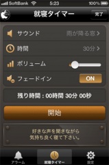 画面下の設定アイコンから、アラーム設定、就寝タイマー設定などを行う事も出来るようになっています。