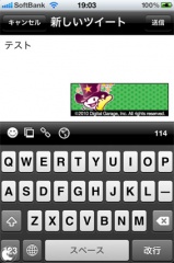 新規投稿機能は、写真付き投稿、GPS情報付き投稿などの他に、スマイルマークをタップして、デコ画像を追加してツイートすることが出来ます。