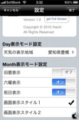 なお、iCal、Googleカレンダー、Outlookとの同期は、このアプリの機能ではなく、iOS 4の標準カレンダー側で同期する必要があります。(参照エントリー:Google Sync for your mobile phoneがiPhone対応)