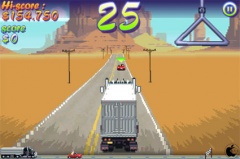 ゲームは、本体を傾けて、トラックが道路を外れないように操作し続けて、オープンカーに追突するという内容です。