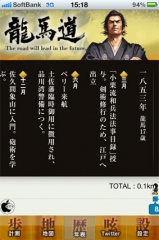 なお、アプリは、坂本龍馬が、17歳で土佐を出て江戸に向かうところから始まります。