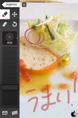サイズボタンをタップして、手描き線の太さ、色や明るさを変えることが出来ます。