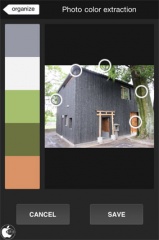 トップ画面からcolorを選択し、写真を読み込みすると、写真からカラーサンプルを抽出してカラーテーマを作成することが出来ます。