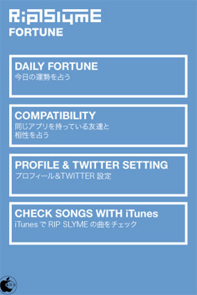 VASILYが、iPhone/iPod touch用占いアプリ「RIP SLYME 占い」を、App Storeにて無料配付を開始していたので試してみました。