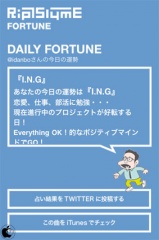 表示された曲をiTunesでチェックしたり、占いの結果をTwitterにツイートしたり出来ます。