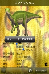 見たい恐竜をタップすると、恐竜に関する詳細な情報を見る事が出来ます。