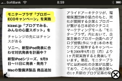 サイトをダブルタップすると、ちゃんとページがめくれ、そこにRSSフィードの文章が流し込まれます。