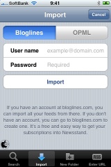 RSSフィードの登録も、URL入力だけでなく、Bloglinesや、サイト上に置いたOPMLデータを取り込む事も出来るようになっています。