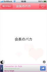 会社の役職、彼氏、悪口、大好きといったジャンルで、約130種類ほど音声を収録したアプリです。
