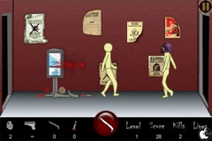 ゲームをスタートすると、左右の入口から、人や動物が移動するので、画面を指でタップして撃ち倒していきます。