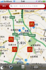 店舗地図をタップすると、現在地情報を元にマクドナルド店舗を検索することが出来ます。
