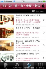 ヘアサロン検索をタップすると、地域絞込検索によって、ヘアーサロン情報を見る事が出来るようになっています。