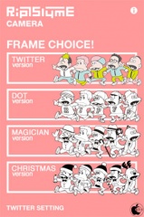 アプリを起動すると、Twitter、DOT、MAGICIAN、CHRISTMASの4つのデザインが表示されるので、その中から好きなデザインを選択します。