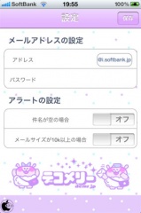 最初に、@i.softbank.jpか、Gmailアカウント情報を設定します。