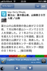 ニュースには、Twitterに投稿するための短縮URLと共に表示され、画面右上のwebボタンをタップすると、オリジナルニュースサイトを表示させることが出来ます。