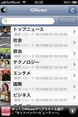 千秋が、iPhone/iPod touch用Google ニュースリーダーアプリ「GNewz」を、App Storeにて無料配付を開始していたので試してみました。
