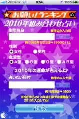 占いアプリ「お願い!ランキング 2010年 組み合わせ占い」を試す