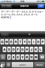 つぶやくボタンをタップすると、アクセル操作やクラクション操作をした内容を自動的につぶやき文字へと変換し、そのままTwitterにツイートすることが出来ます。
