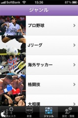 ジャンルをタップして、プロ野球、Jリーグ、海外サッカー、格闘技、大相撲、映画、芸能、韓流、旅行、ダイエット、グルメ&レシピ、コスメ、占いの13ジャンル・42コースの動画を見る事が出来ます。