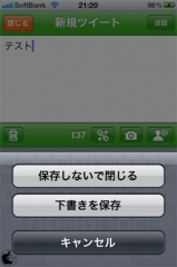 また、閉じるボタンをタップすると、それまで記入した内容を下書きとして保存することも出来ます。