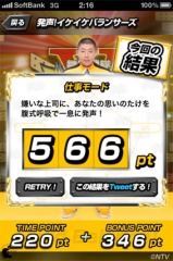特訓をやめると、発声量に応じたポイントが表示されます。